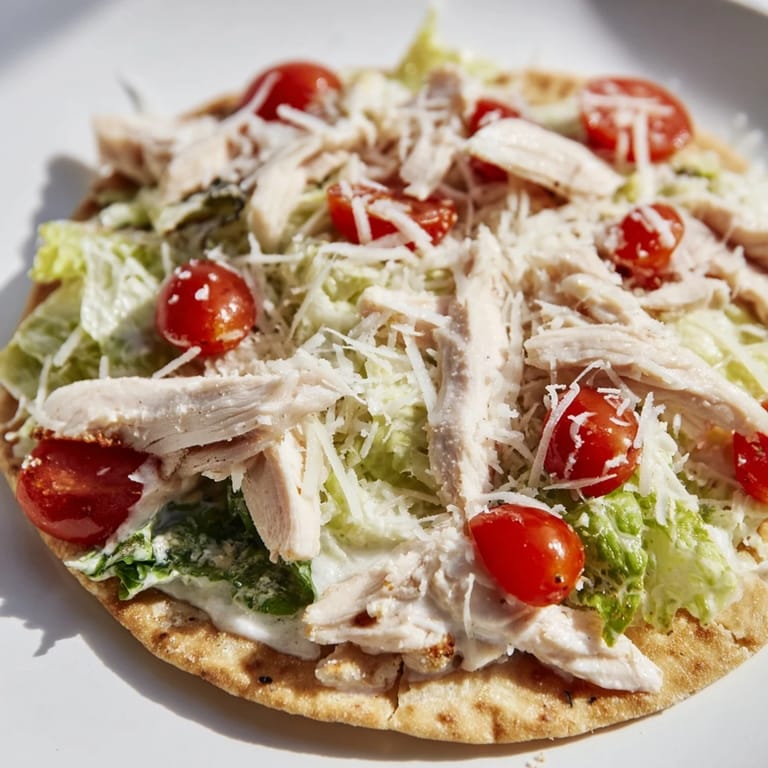 Pin It My sister came over one afternoon craving something light but satisfying, and we stood in front of the open fridge debating salad versus pizza. That's when it hit me: why not both? I grabbed the flatbreads I'd been saving, some leftover romaine, and a bottle of Caesar dressing, and we built something that felt like breaking the rules in the best way. The smell of garlic and Parmesan mingling with warm, crispy bread made us forget we were trying to compromise at all.
