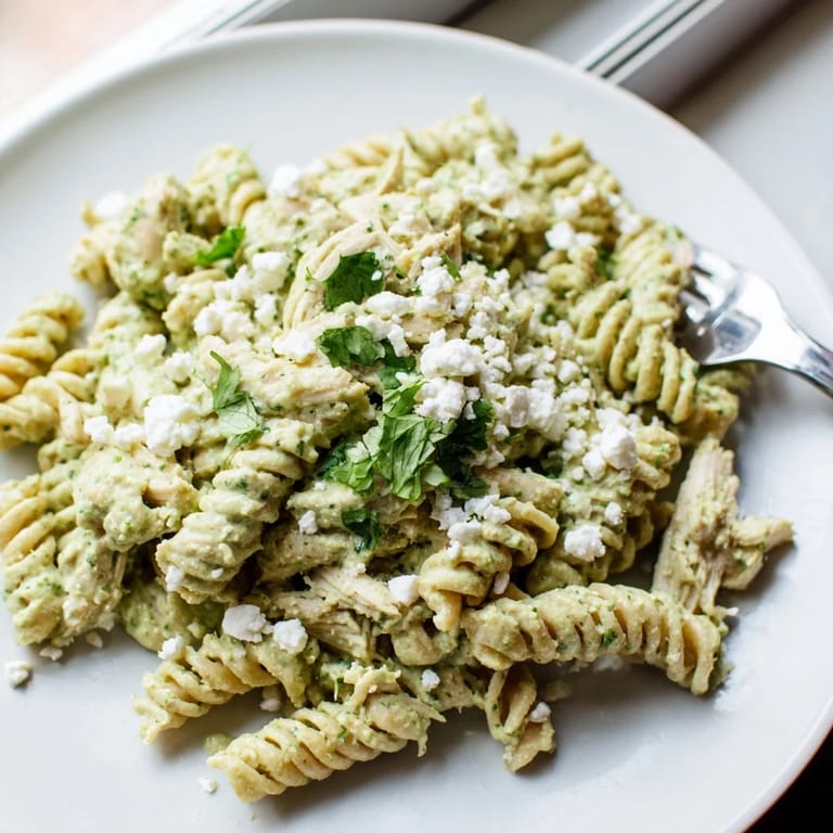 - In your largest mixing bowl, combine the hot pasta with that shredded chicken and pour over every drop of that beautiful green sauce. Toss everything gently but thoroughly until each piece of pasta is coated and the chicken is evenly distributed throughout.
