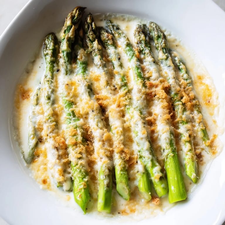 The magic is in the contrast: tender asparagus against a silky, cheesy sauce, all finished with a buttery golden crust that gives you a little crunch with every bite. The cream and milk create a sauce that's rich but not heavy, and the blend of Gruyère and Parmesan means you get both smooth melting and sharp, complex flavor. It's the kind of dish that tastes fancier than it actually is, which is exactly why it works for both weeknight dinners and Sunday company.