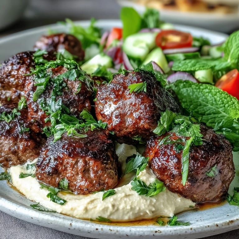 - Spread a generous spoonful of hummus on each plate, add a portion of salad, and top with the warm meatballs. Garnish with extra parsley or mint if you like.